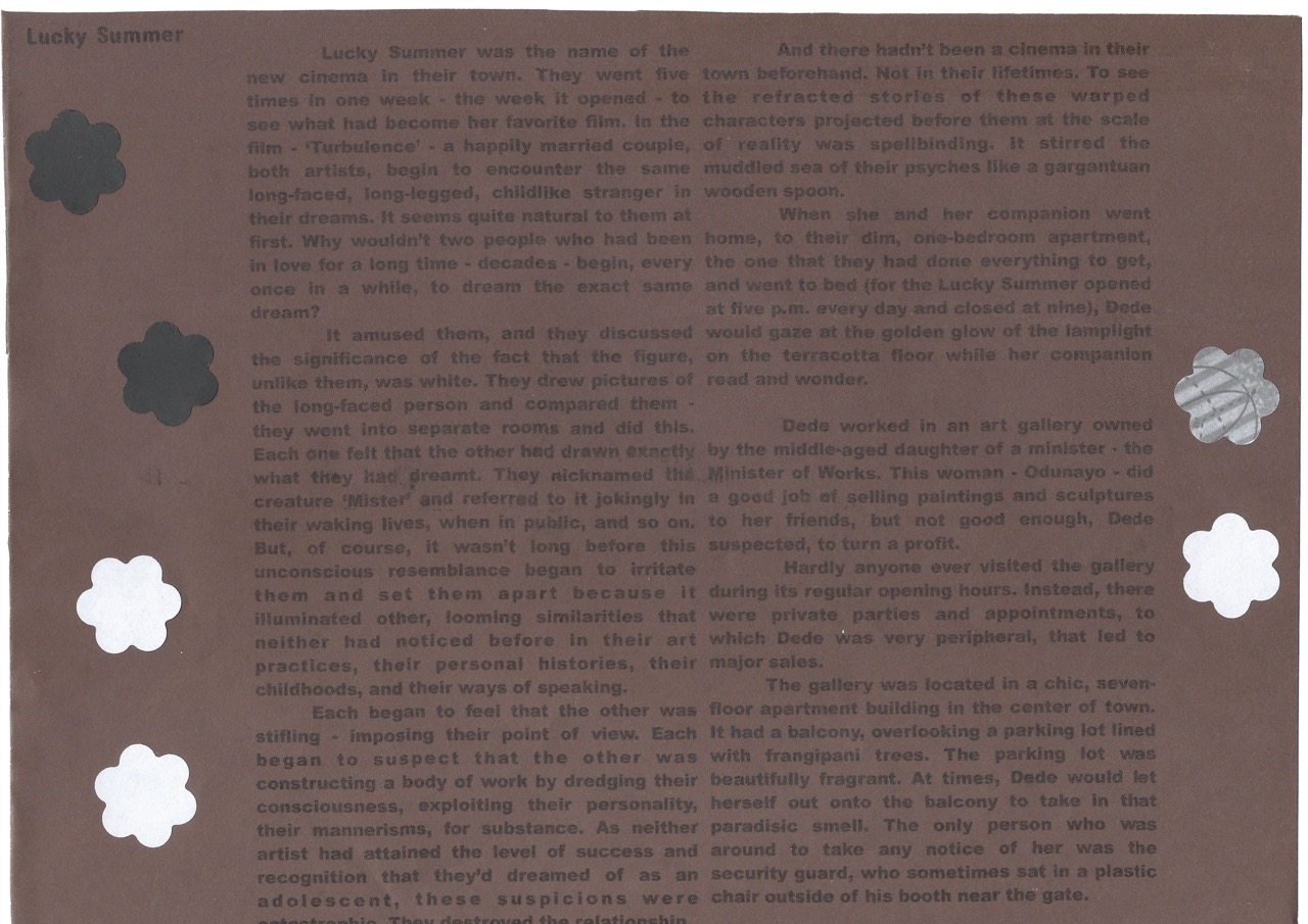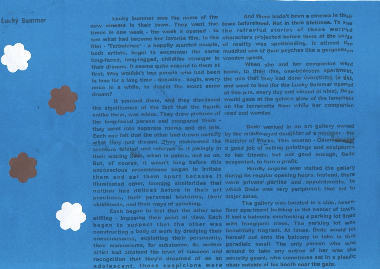 Run of two ~A4 broadsides printed with excerpt from short story 'Lucky Summer.'