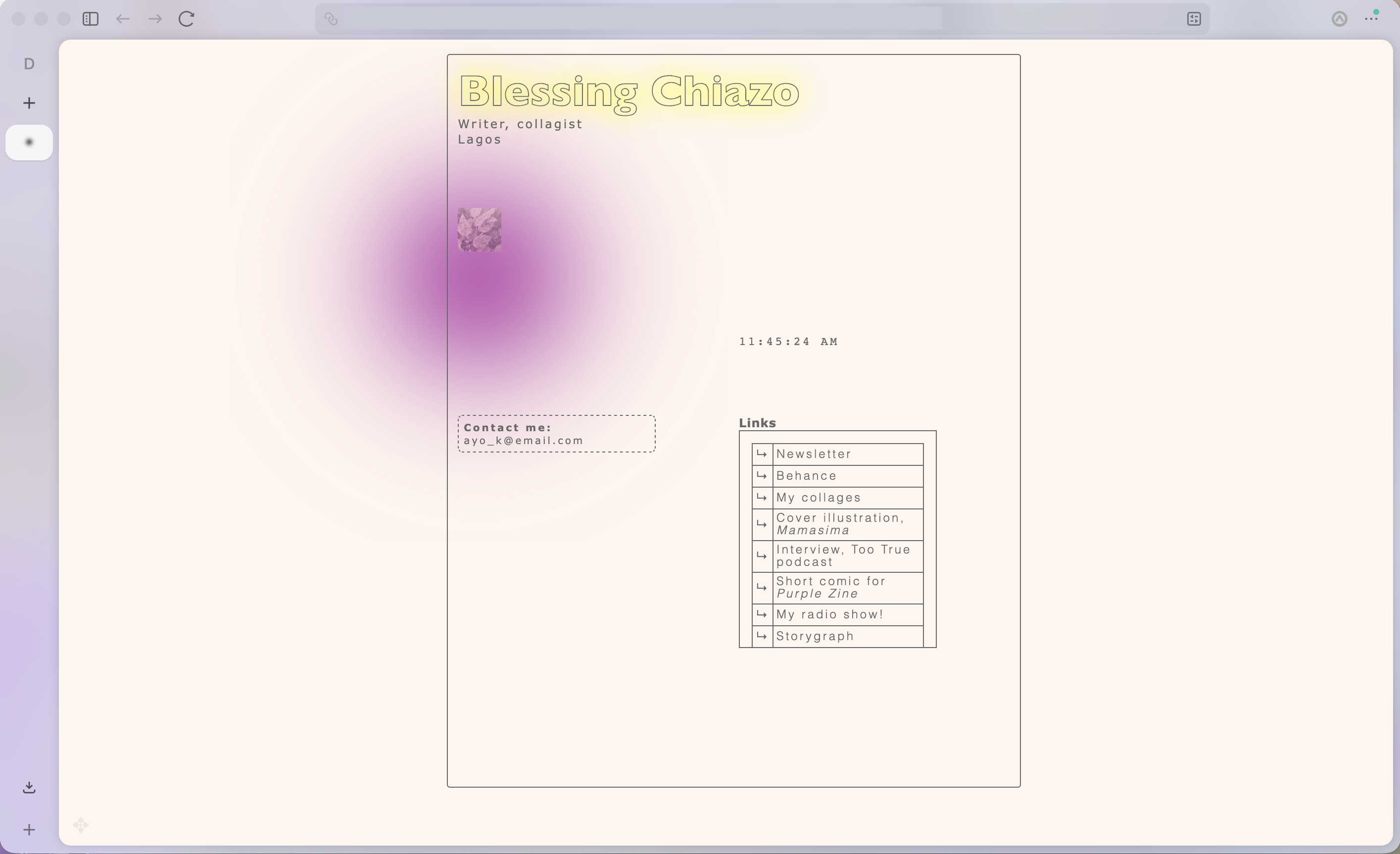 This website is a convenient and playful way to share your recent artwork, projects, features, or bylines with your audience and is designed to look especially beautiful on mobile devices. ✏